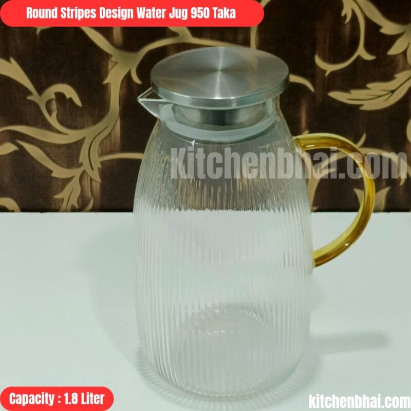 1.8 Liter Round Stripes Water/Juice Jug with Steel Lid