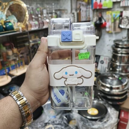 Two Part Lovely Kids Cartoon Water Bottle-White