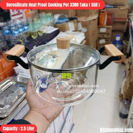 Borosilicate Glass Cookware- Cooking Pot with Lid and Handle- 2.5 Liter BFD