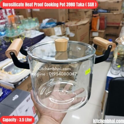 Borosilicate Glass Cookware- Cooking Pot with Lid- 3.5 Liter