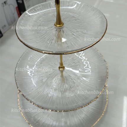 Luxury Elegant Gold Lining Striped Round Decorative Serving Tray with Handles