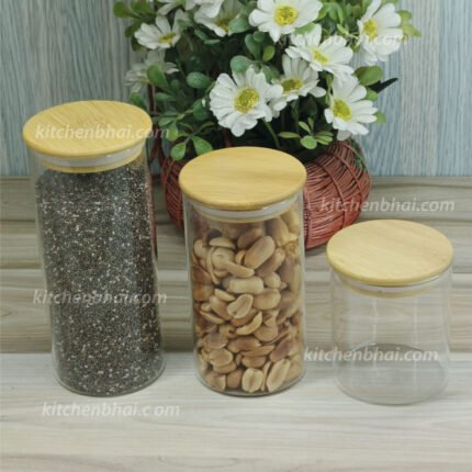4 Pcs Curved Air Tight Jar Set With Wooden Lid Capacity: 350 ML/550 ML/750 ML/950 ML