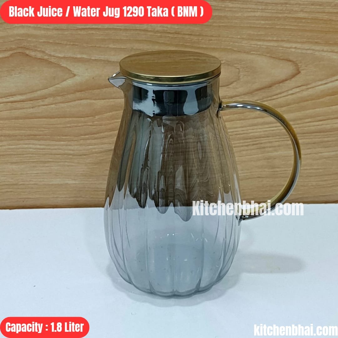 1.8 Liter Black Borosilicate Water Jug with Golden Steel Lid [BNM-4]