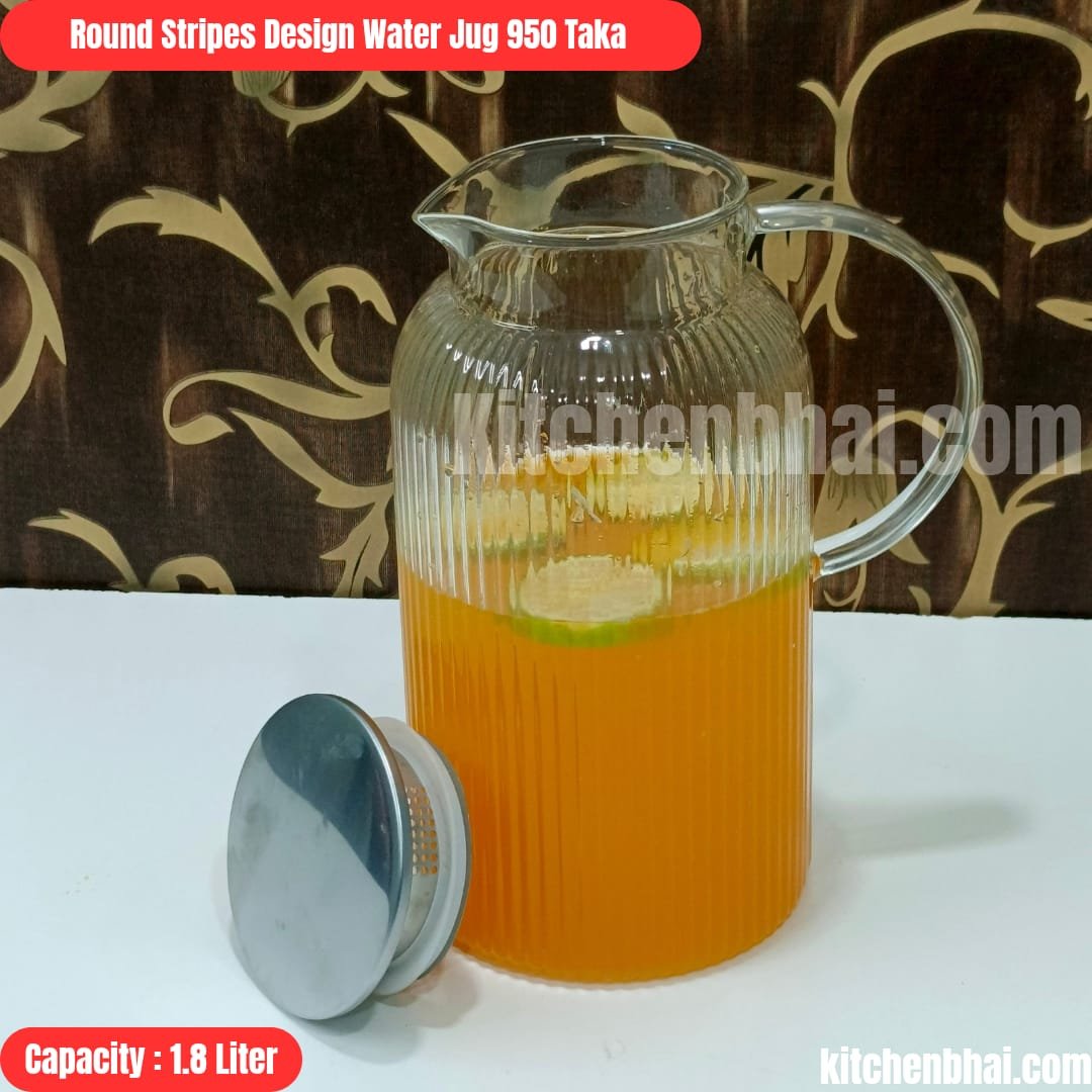 1.8 Liter Round Stripes Water/Juice Jug with Steel Lid