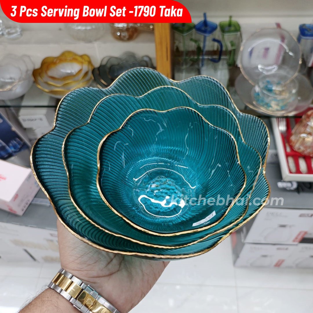 3 Pcs Golden Rim Curry Serving Bowl- Blue Lagoon