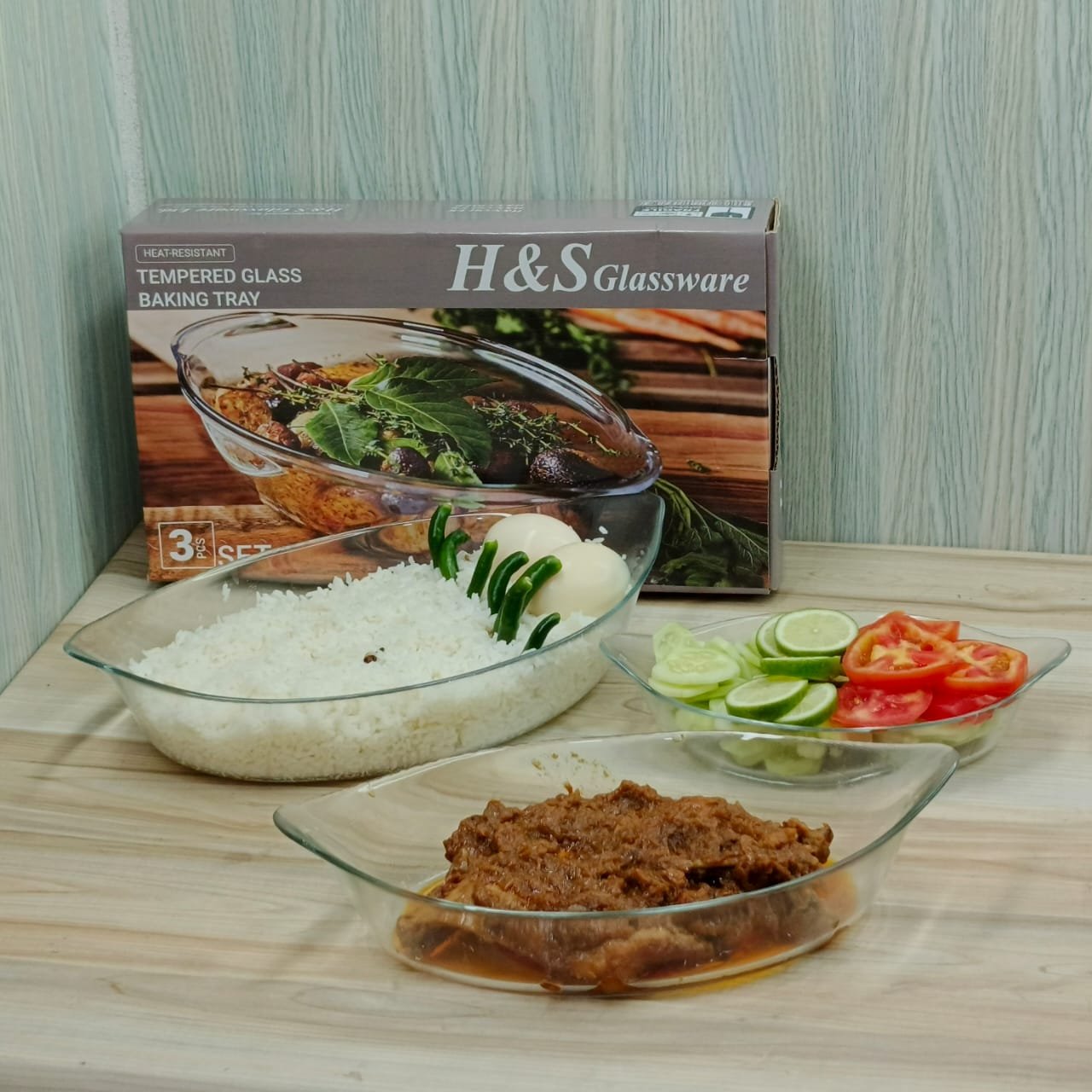 3 Pcs Tempered Glass Oven Proof Serving Dish- H&S Glassware