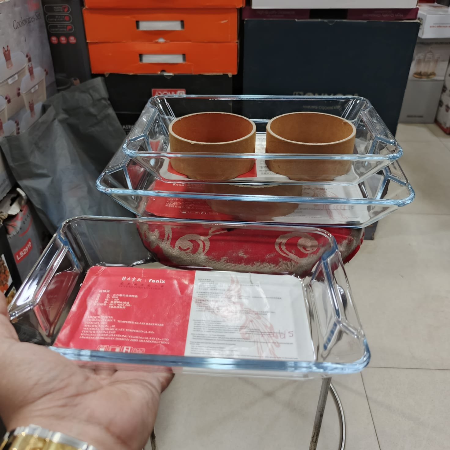 3 Pcs Tempered Glass Rectangular Serving Dish Two Handle-70501