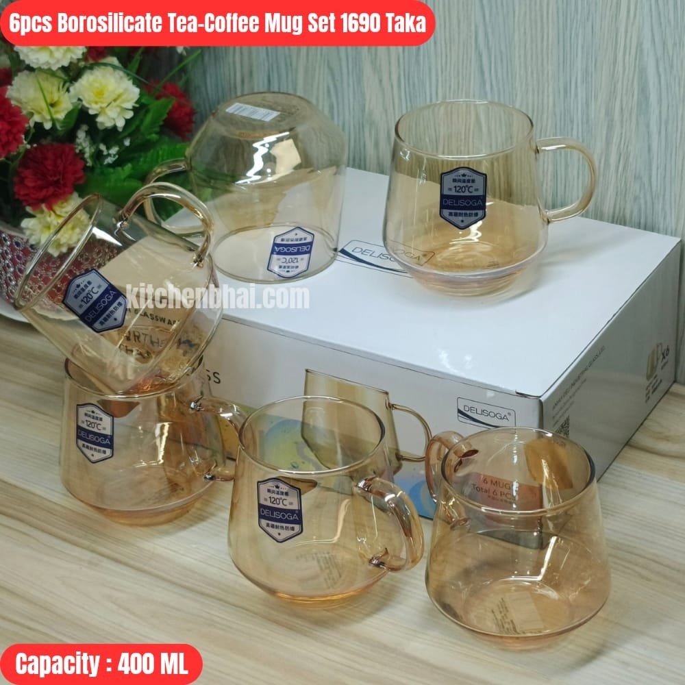 6 pcs Borosilicate Mug Set – 400 ml- Golden