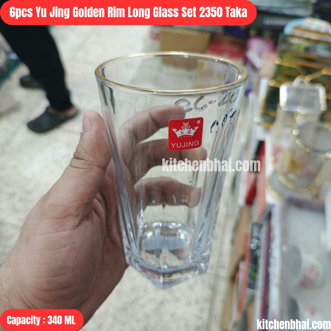 6 Pcs Glass Set -Golden Rim Long Glass Set-260505