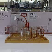 8 Pcs Borosilicate Glass Jug Set With Wooden Tray