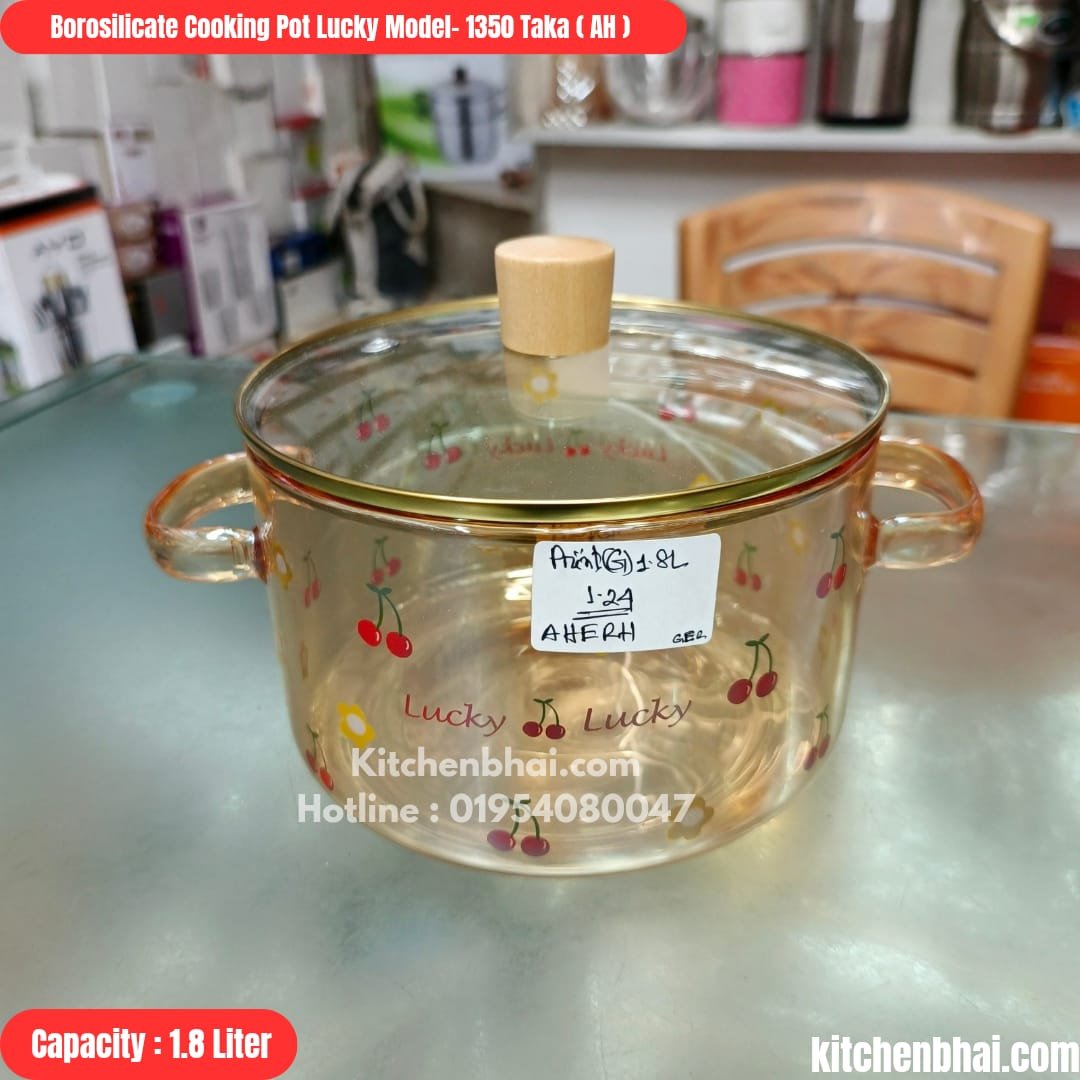 Borosilicate Glass Cookware- Lucky Model Cooking Pot with Lid- 1.8 Liter-AH