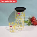 Borosilicate Glass Water/Juice Jug- 7 Pcs Set-Good Morning (Yellow)