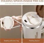 • Dust-proof lid and spoon: with integrated folding spoon, dust-proof lid and sealing ring, this stainless steel thermal mug keeps your drink hot or cold while remaining hygienic and easy to use. Perfect for comfortable mixing and drinking anywhere