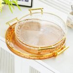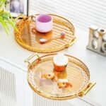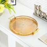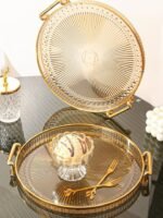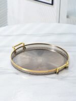 Be the first to review “Luxury Elegant Gold Lining Striped Round Decorative Serving Tray with Handles” Cancel reply