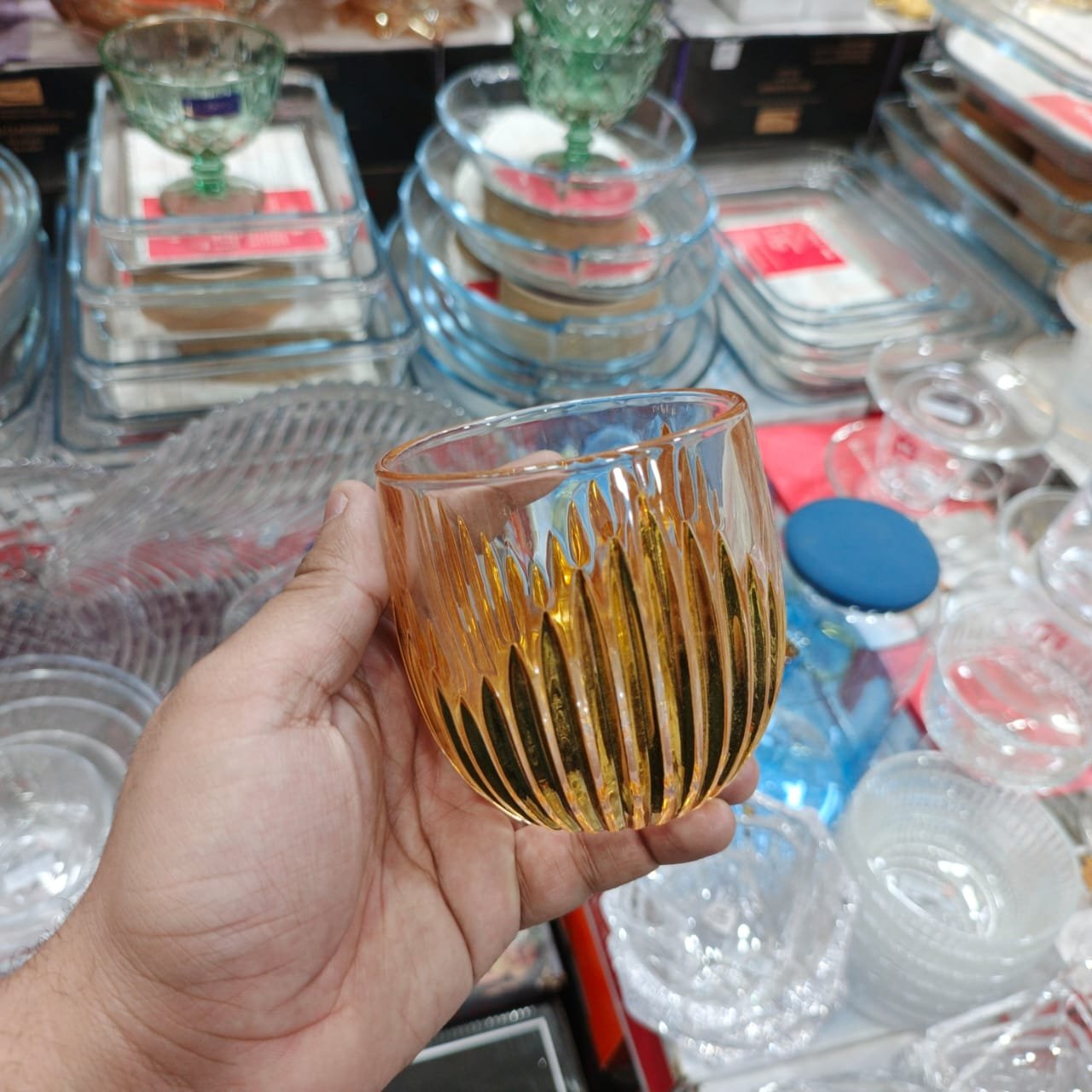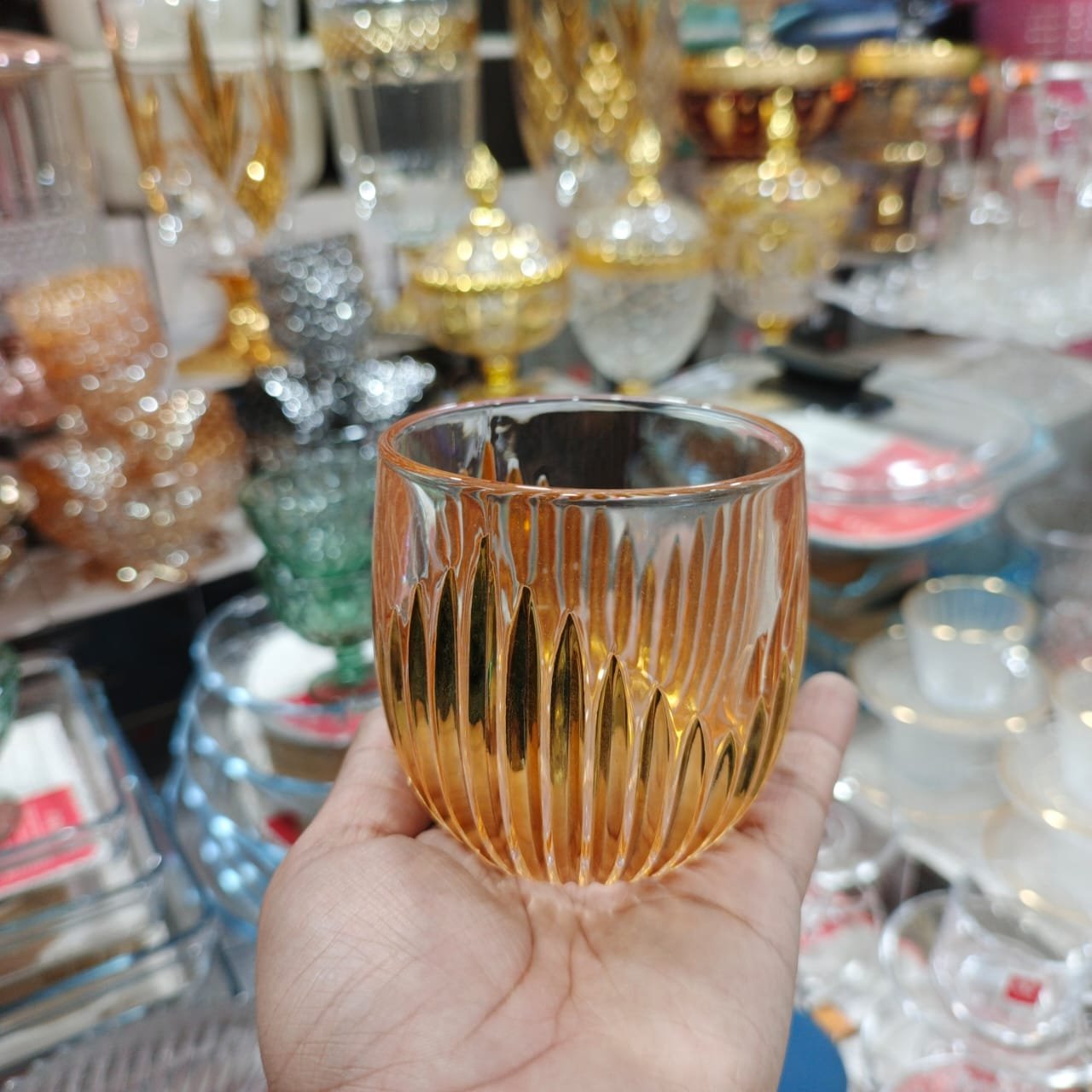 Premium Water Glass Juice Glass- 6 Pcs Glass Set – Golden Strip Design 270 ml