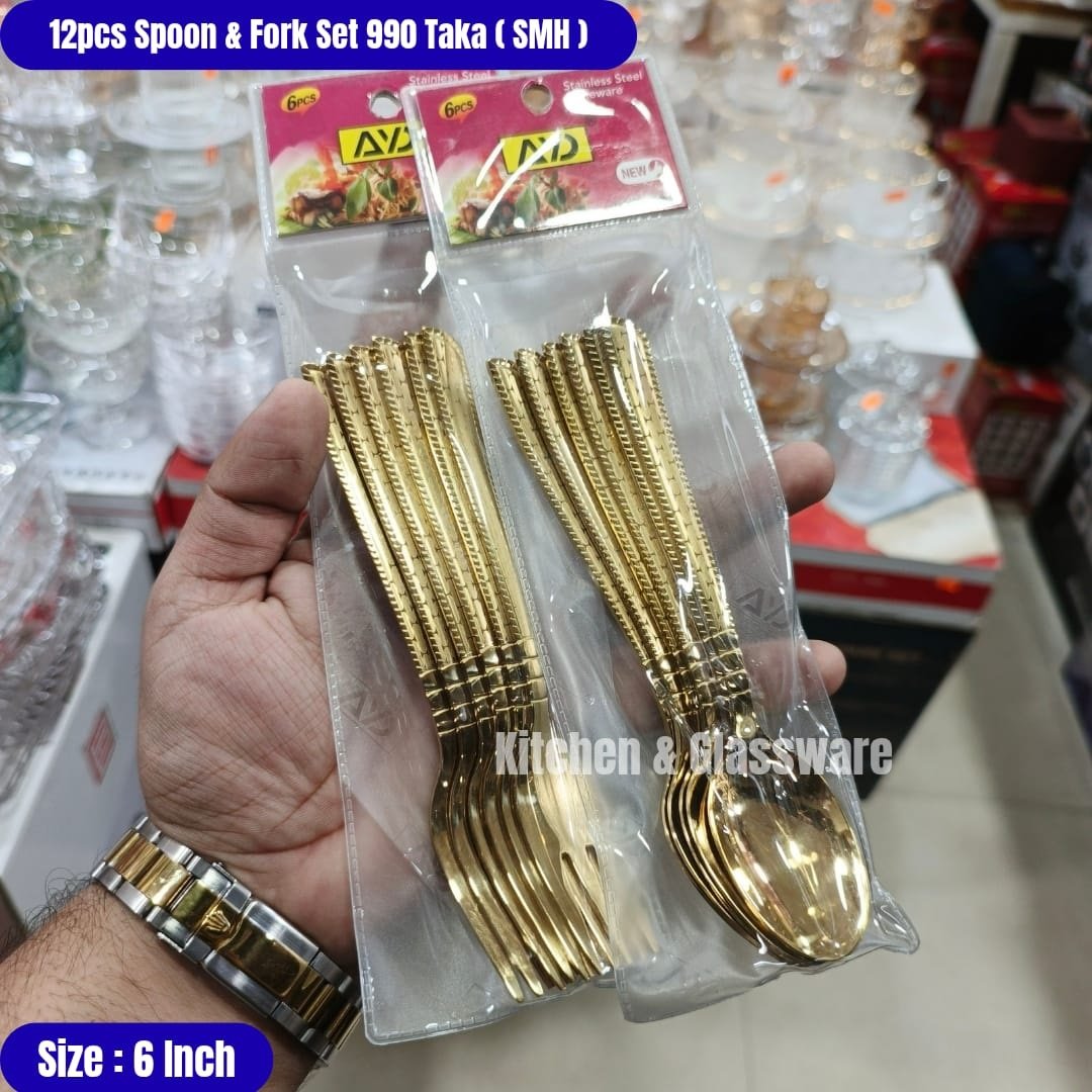 Stainless Steel Golden Spoon & Fork 12 Pcs Set-AYD-819-SMH