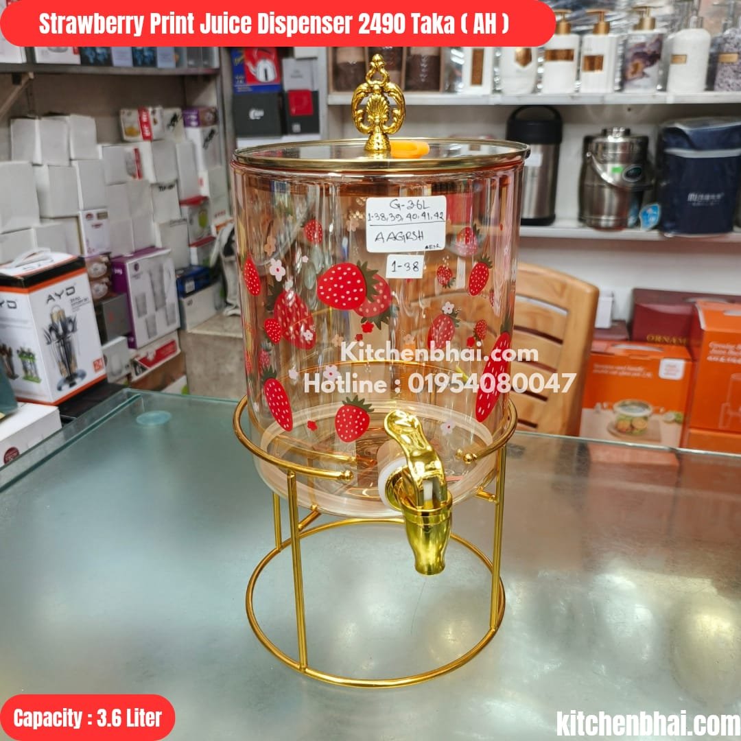 Strawberry Print Glass Juice Dispenser-3.6 Liter (AH)